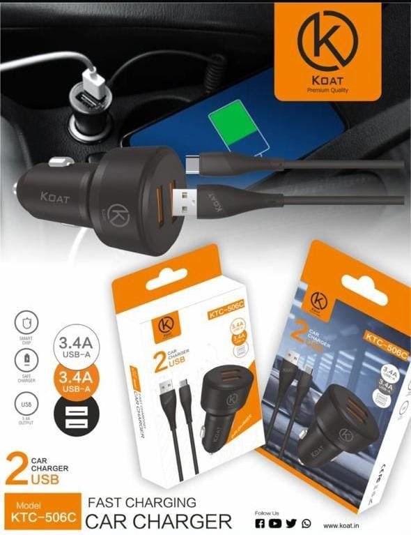 KOAT KTC 506 3.4 AMP WITH TYPE C CABLE WITH WARRNTY