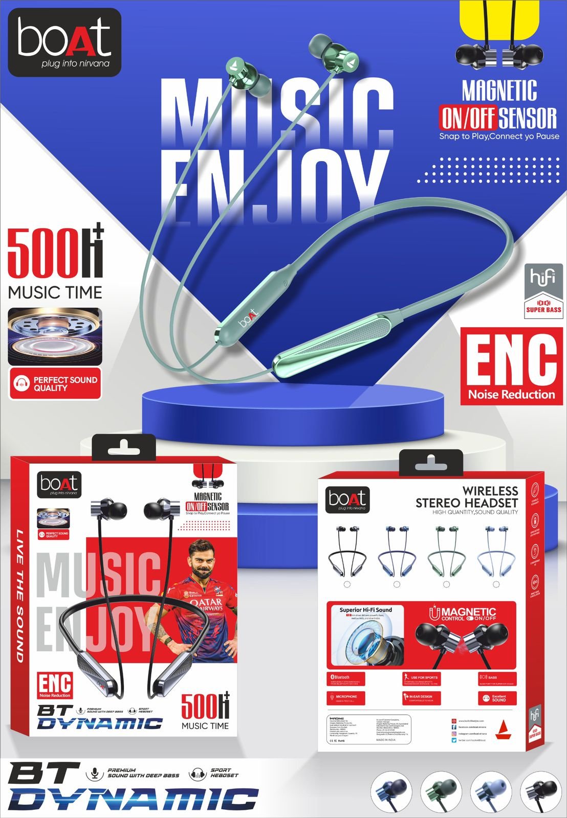 BOAT 🆕 Dynamic Neckband Magnetic 🧲 on Off+ Metal Ear+ Shiny ✨ Ear+220 Mah big Battery