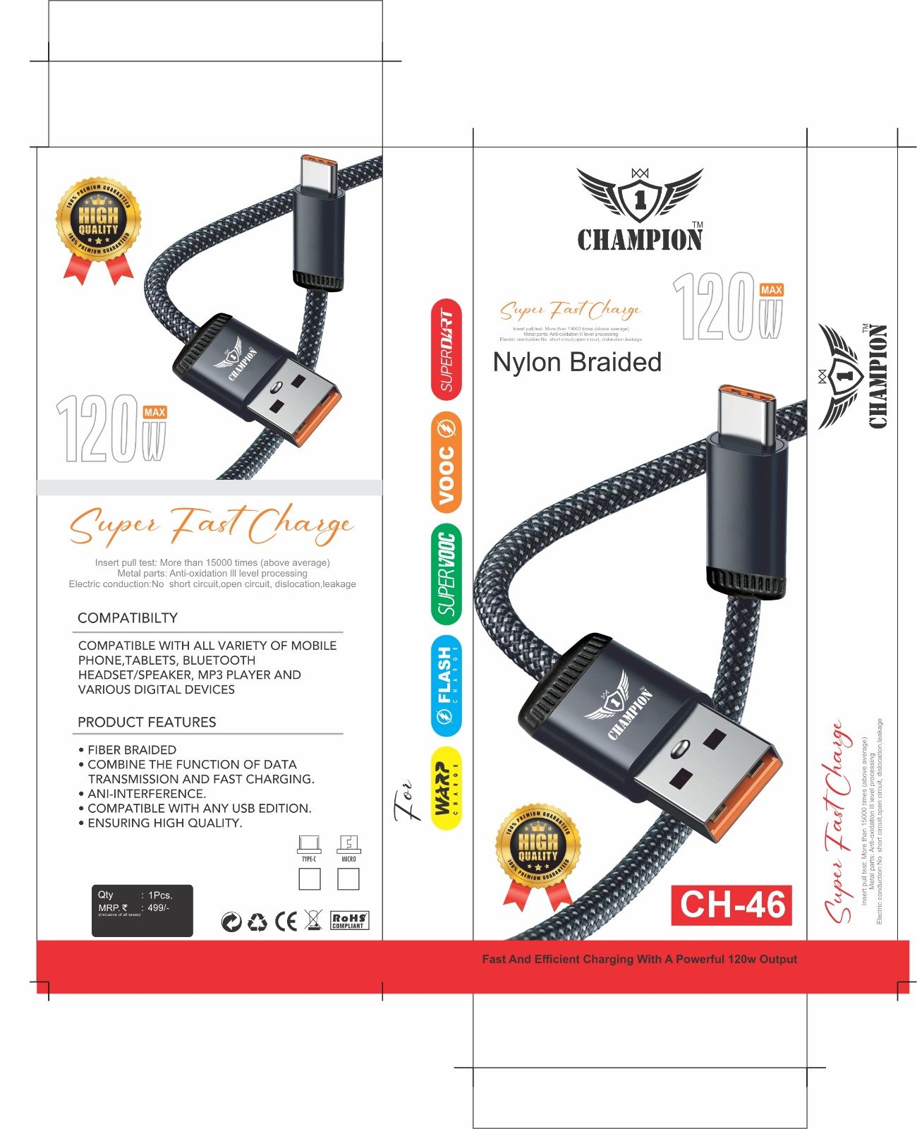 CHAMPION CH46 120W TYPE C FAST CHARGING METAL CABLE