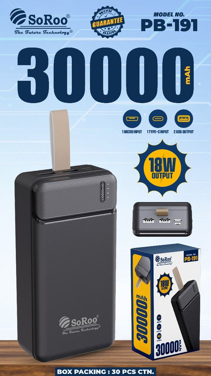 SOROO PB 186 20000 MAH 30W FAST CHARGING POWER BANK